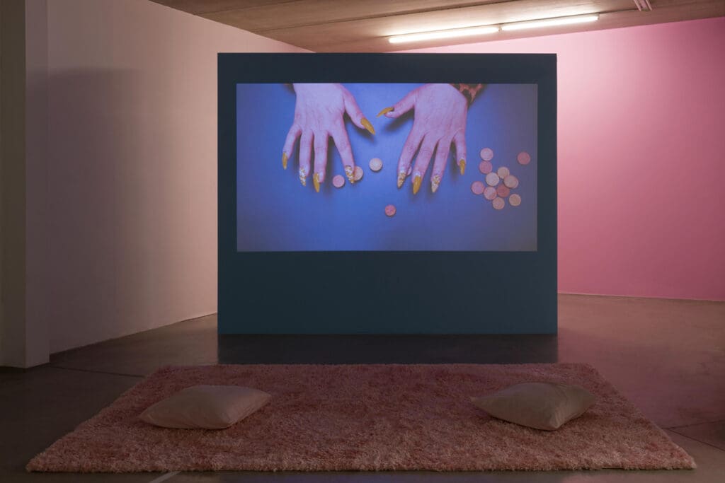 In “Gesticulating… Wildly”, objects and details from each of the three films expand into the real space of the exhibition to create a total environment. The sounds of one film carry the visitor to the next, occasionally spilling over. As viewers immerse themselves in Flanagan’s universe, they become protagonists in their own right, inhabiting the familiar situations of someone watching television, running errands, ordering junk food. Who do we trust? Which behaviour do we find acceptable, and which actions do we condemn? When has somebody crossed a line? “Gesticulating…Wildly” pushes us to leave our physical and ideological comfort zones and take a position.