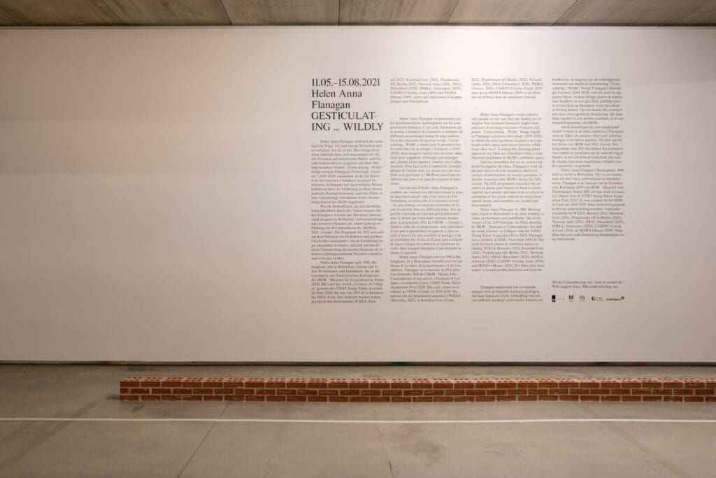 Gesticulating Wildly... takes place following the 2019 IKOB Feminist Art Prize, where a jury consisting of Daniella Géo (formerly HISK, Gent), Louise Osieka (CIAP, Hasselt), Marie-Hélène Joiret (Chataigneraie, Flemalle) and Eva Wittocx (Museum M, Leuven) chose Helen Anna Flanagan for the first prize, leading to the invitation for a one-person exhibition at IKOB.